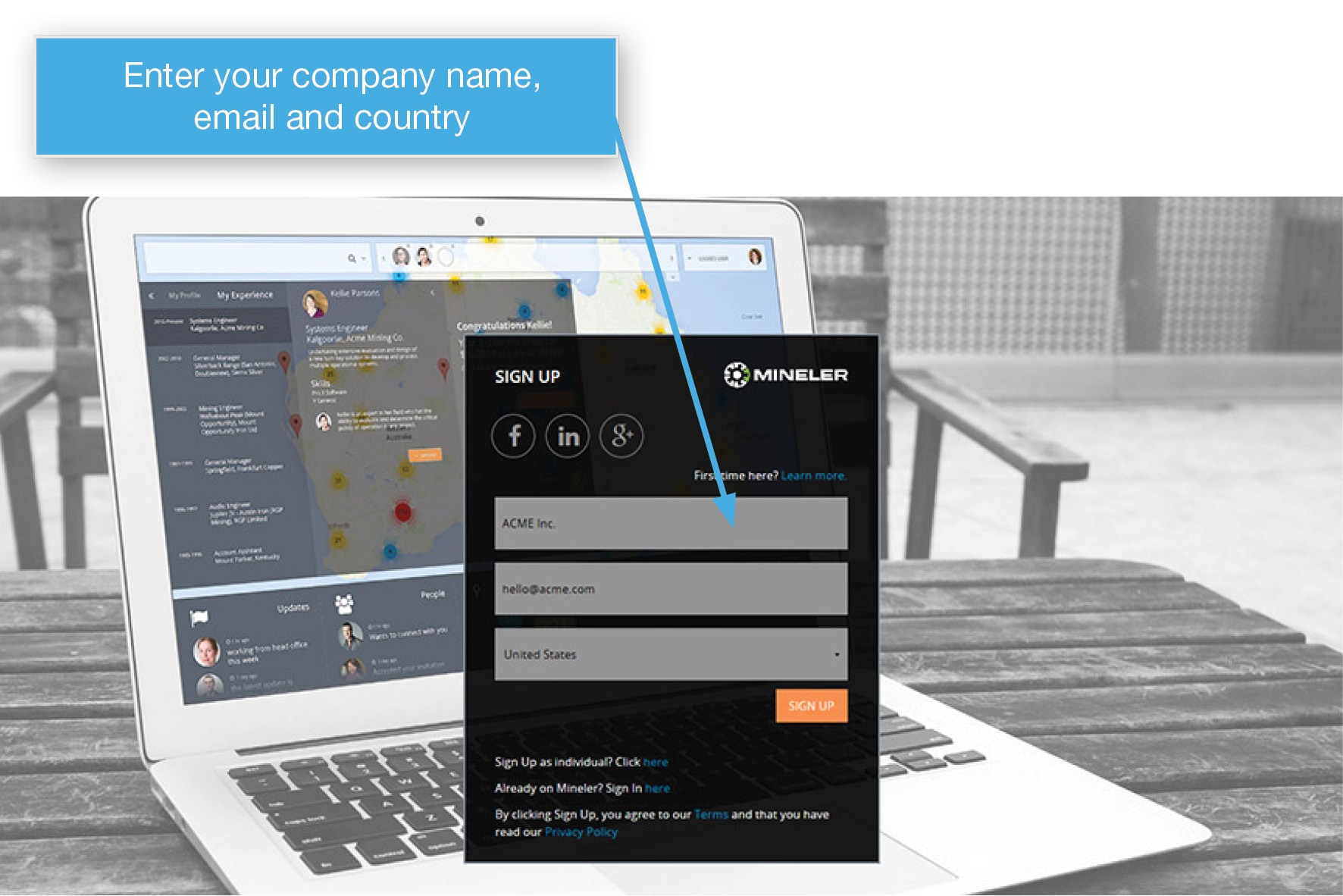 1. To get started, open www.mineler.com/signup and select ‘Company’