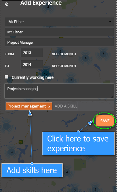 a) Find a blue public pin if you want to add experience on an existing project and click on it.