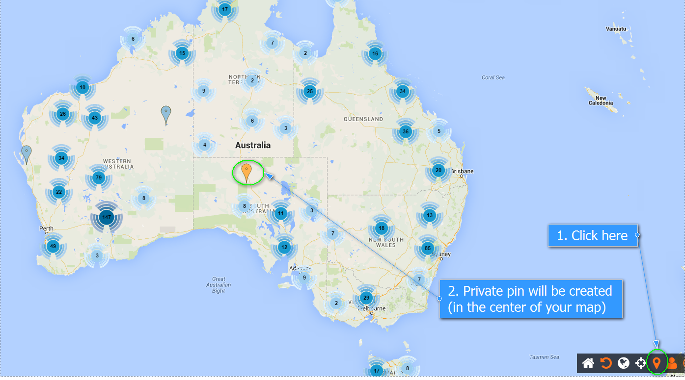 b) OR drop your own pin if you want to create a new project where to add your experience (Pin icon in the bottom right corner).