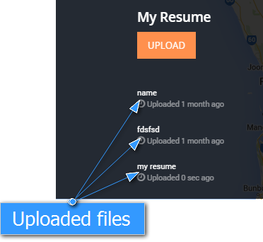 Enter the name for your Resume , choose a file and click “UPLOAD”.